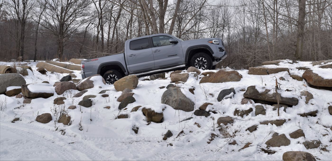 What really impressed us was we were able to take the truck up an actual rock crawling course made for trucks with thousands of dollars of offroad accessories, and the Tacoma was able to crawl up the rocks with little to no drama. We were able to make it to the top of a very difficult crawling course with no scraping, little wheel slip, and no bottoming out.